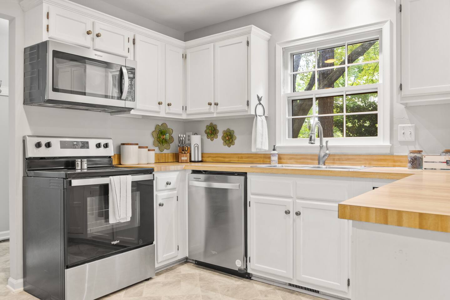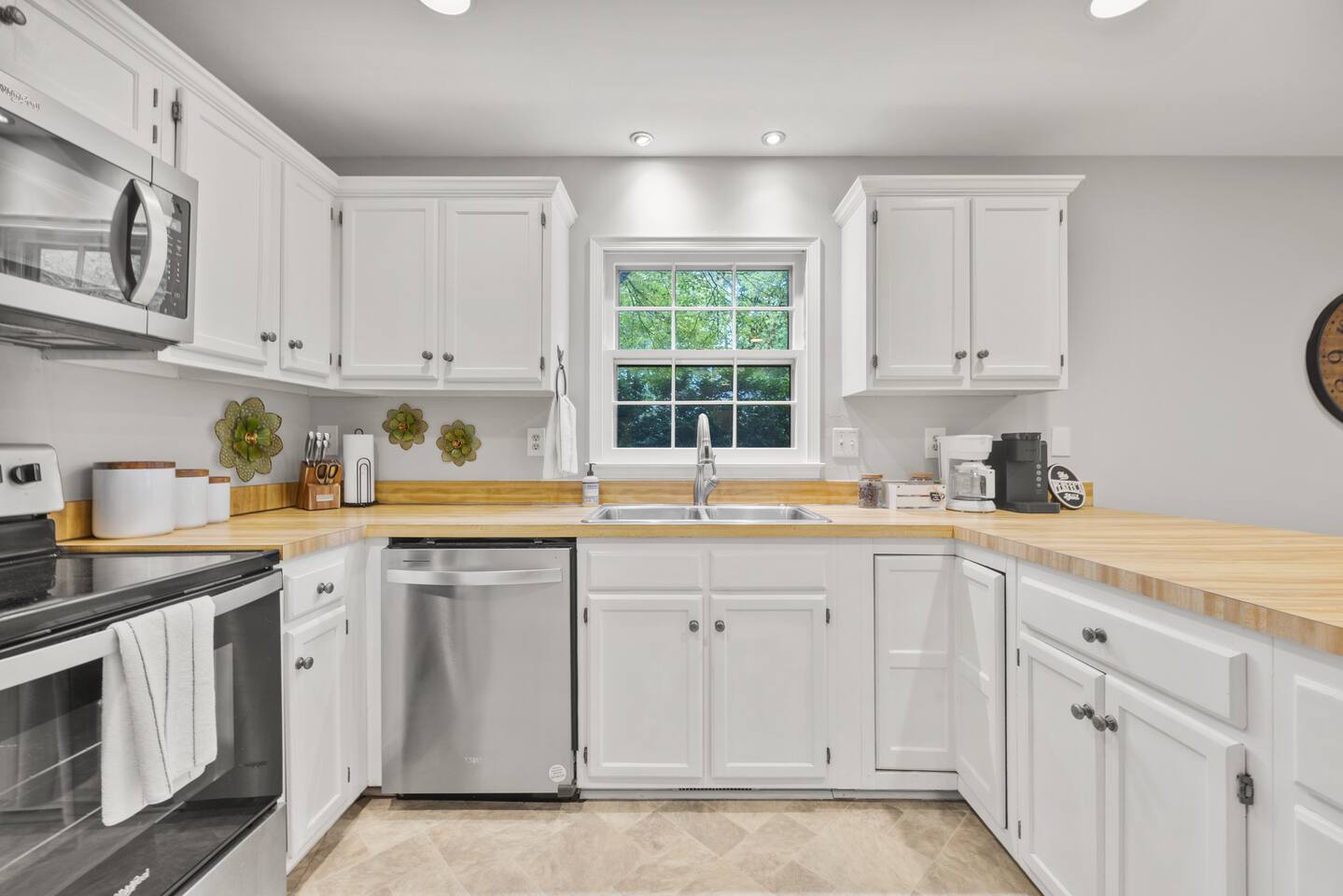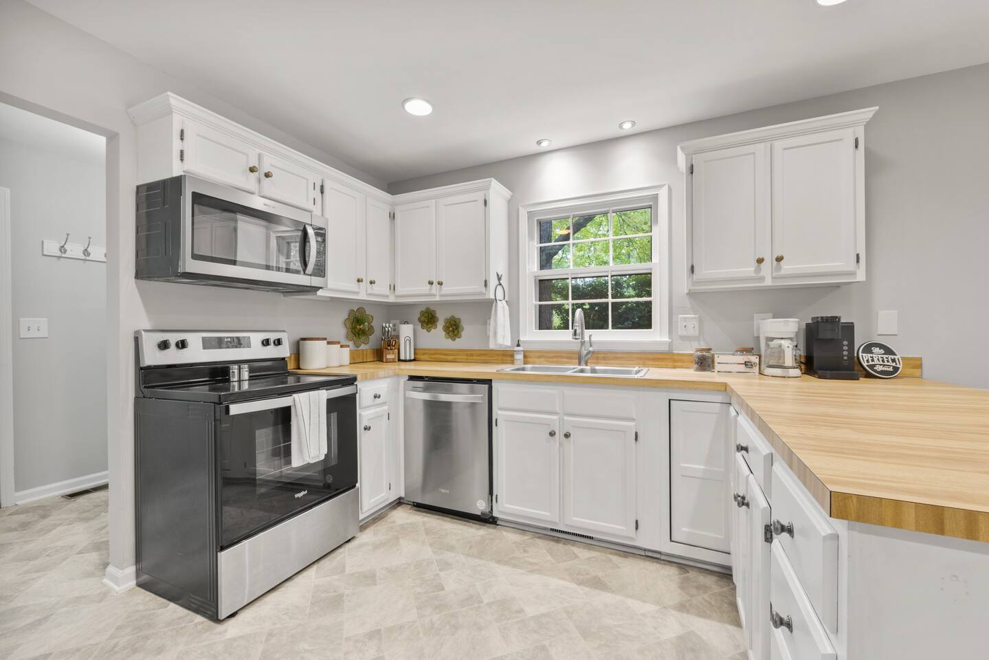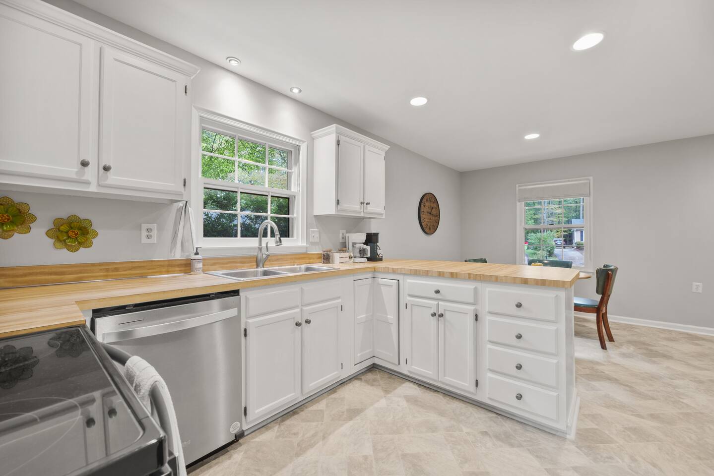 KEY FEATURES: ☀ Open floor plan on a quiet Cul De Sac ☀ Updated en suite and large walk in closet ☀ 3 comfortable bedrooms; 1 kings, 2 queen ☀ Fully stocked kitchen updated appliances ☀ Cozy living room w/ 55-inch smart TV, L-couch, board games, and puzzles ☀ Coffee bar with all the fixins ☀ Snacks and water ☀ High-speed Wifi ☀ Fully stocked bathrooms ☀ Front porch with chairs and table ☀ Washer + Dryer ☀ Iron and Ironing Board ☀ Located near downtown Raleigh ☀ Free parking ☀ Park-Like backyard with huge deck and grill ☀ Free parking with private driveway ☀ 6 port Charging Station in every room ☀ Pet friendly ☀ Air Purifier ☆☆ BEDROOMS + BATHROOMS ☆☆ There are three stylish bedrooms, one king-size bed and two with comfortable queen beds. Two spacious bathrooms, en suite is renovated and has a beautiful walk in tile shower, tall vanity. Shampoo, conditioner, body wash, hand soap, blow dryer, extra toilet paper and trash bags are all provided. ☆☆ KITCHEN & DINING ☆☆ The home features an open kitchen with a large refrigerator, deep stainless steel sink, glass electric stove top, oven and microwave. The dining area offers a buffet counter for serving or mixing cocktails and has plenty of room to comfortably host family dinners. We provide everything you'll need to cook and clean up after a delicious family meal including cookware, dishes, utensils, dishwasher pods, cutting boards, cookie sheets, and more. The dining table can comfortably seat four people with two more at the kitchen counter. ☆☆ LIVING ROOM ☆☆ There’s a large 55-inch smart TV as well as a comfortable L-shaped leather couch, comfortable reading chair, a collection of board games, and more! ☆☆ OUTSIDE SPACE ☆☆ While there are plenty of outdoor activities nearby, the house also provides its own outdoor space for guests to enjoy. There are plenty of seating areas for guests to sip morning coffee or enjoy a glass of wine as the sun goes down. There's a front porch with table and chairs and a large deck overlooking the wooded backyard! Need storage? We’ve got that covered too. There is a large shed in the backyard if you need to store bikes, or extra items for longer stays. Your safety matters. So we have outfitted the property with smoke and carbon monoxide detectors as well as fire extinguisher and first aid kit. ★☆ Book now & let us take care of you in Raleigh! ☆★
